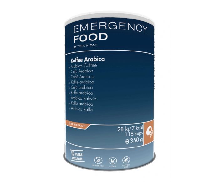 Diese 350 gramm-Dose enthält speziell von Katadyn ausgewählten Kaffee. Arabica-Bohnen sind die mit Abstand beliebteste Kaffeesorte der Welt. Sie haben einen tiefen, reichhaltigen geschmack und sind viel weniger sauer und bitter als andere Sorten. Dank all dieser eigenschaften ist die Nachfrage hoch und der Preis für Arabica-Kaffee daher auch etwas höher als für andere Bohnen. diese dose enthält kaffeepulver aus 100% Arabica-Bohnen. Wenn Sie also vorübergehend von der gesellschaft abgeschnitten sind, können Sie trotzdem köstlichen Kaffee genießen.